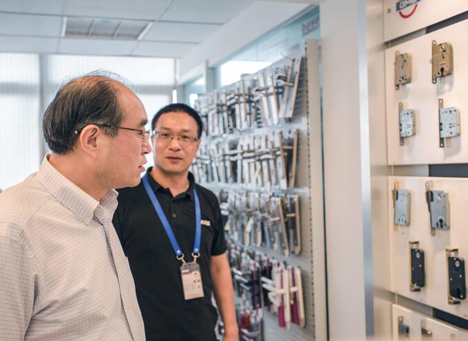 El Sr. Xu visitó la oficina de GMB, la sala de muestras y el laboratorio de pruebas acompañado de la Sra. Lydia XU y el Sr. Benny Chen.